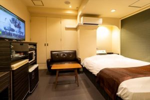 基本的な設備として、マッサージローションや42インチ以上の大型TV、VODや持ち込み用DVDデッキ、無料Wi-Fiや客室インターネット、電子レンジや電気ポット、空気清浄機や加湿器、持ち込み用冷蔵庫やシャワートイレ、くるくるドライヤーやヘアアイロン、ルームウェアや女性向け・男性向け化粧品、携帯電話の充電器など、豊富なアメニティをご用意しています。