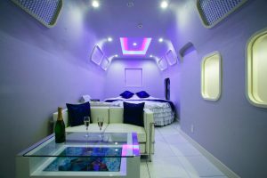一部のお部屋ではレインボーバスやジェットバス・ブロアバス、浴室TVや100インチ以上の大画面TV、プロジェクターや5.1chサラウンドシステム、マッサージチェアや通信カラオケ、客室タブレットうあバスローブ、お姫様ベッドがあるお部屋や和室などもご案内します。