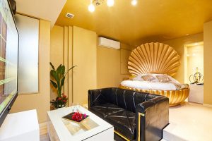 広々としたガーデンバスや貸切岩盤浴、無料の貸切ダーツ&ビリヤード場、オリエンタルな気分を味わえる水パイプを吸えるシーシャバー、本格カラオケルームや光る浴槽、プロジェクションマッピングや黄金猫脚風呂、天蓋ベッドや2ベッドルーム、キッチンダイニングや黄金ドーム型ベッド、黄金貝殻ベッド、テンピュールベッドやアクアリウム、客室内ビールサーバや簡易ダーツ、プラネタリウムやマンガ―ルームなど、様々な設備があります。