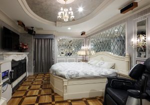 基本的な設備は、ジェットバスやブロアバス、42インチ以上の大型TV、リクエストビデオや有線放送、電気ポットや持ち込み用冷蔵庫、くるくるドライヤーやシャワートイレ、バスローブや豊富なアメニティを取り揃えています。一部のお部屋には、ブラックライトやお姫様ベッドがあるお部屋、和室などもあります。