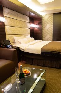 お部屋はTYPE AジュニアスタンダードからTYPE Bスタンダード、TYPE Cデラックス、TYPE Dプレミアム、TYPE Eグランデ、TYPE Fラグジュアリー、TYPE Gインペリアルへとランクアップします。基本的な設備は50インチTVやBOSEブルートゥースサウンドスピーカー、無料Wi-Fiや1000タイトルが楽しめるVOD、浴室TVなどがあります。