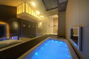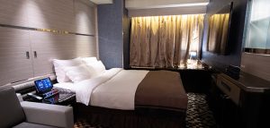 お部屋はTYPE AジュニアスタンダードからTYPE Bスタンダード、TYPE Cデラックス、TYPE Dプレミアム、TYPE Eグランデ、TYPE Fラグジュアリー、TYPE Gインペリアルへとランクアップします。基本的な設備は50インチTVやBOSEブルートゥースサウンドスピーカー、無料Wi-Fiや1000タイトルが楽しめるVOD、浴室TVなどがあります。