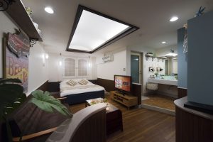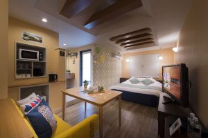 明るく広々としたお部屋にキングサイズベッドや70インチTV、ミストサウナなどを設置した502号室、青をメインにした涼やかな印象の407号室、木目調を活かした女性に人気な落ち着ける404号室など、様々なお部屋をご用意しています。